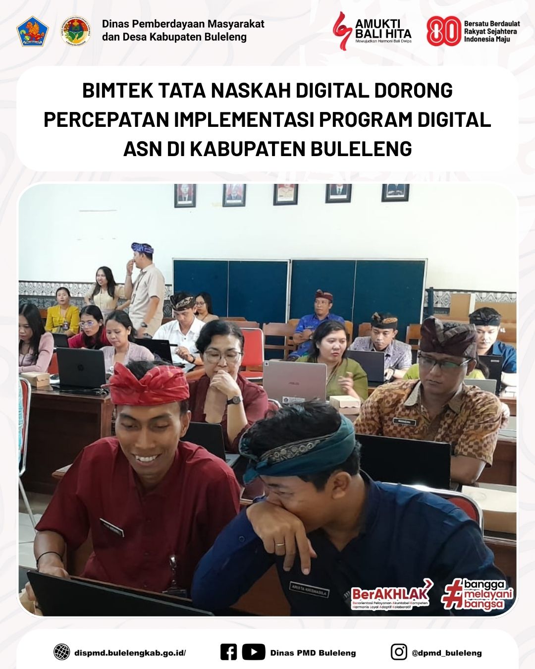 Mewakili Dinas Pemberdayaan Masyarakat dan Desa (PMD) Kabupaten Buleleng, kegiatan ini dihadiri oleh Staf Sub Bagian Umum, Made Dwi Primayanthi, bersama para pengelola kepegawaian dari berbagai Satuan Kerja Perangkat Daerah (SKPD) di lingkungan Pemerintah Kabupaten Buleleng.