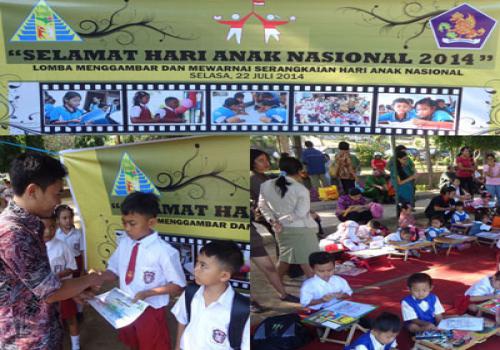 Dalam rangka hari anak maka Badan KB-PP menyelenggarakan lomba mewarnai. lomba di hadiri oleh anak-anak sekabupaten buleleng bertempat di Lapangan Ngurah Rai Singaraja pada hari selasa 22 juli 2014
