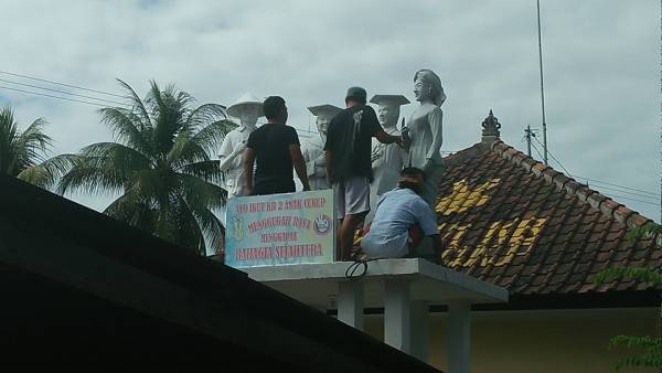 Kegiatan hari ini, mengangkat dan memposisikan patung untuk melanjutkan pembangunan patung KB di balai penyuluhan KB Kecamatan Banjar, astungkara beberapa hari lagi selesai pengecatan dan acara mlaspas