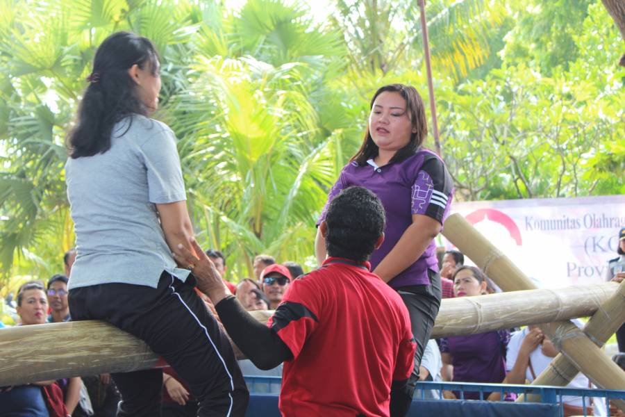 Lomba Gebung Bantal Putri yang diwakili oleh Irayami dari Dinas PPKBPP-PA Kabupaten Buleleng, dalam memeriahkan HUT Kota SIngaraja yang ke-415 yang diselenggarakan di pantai Lovinas Singaraja