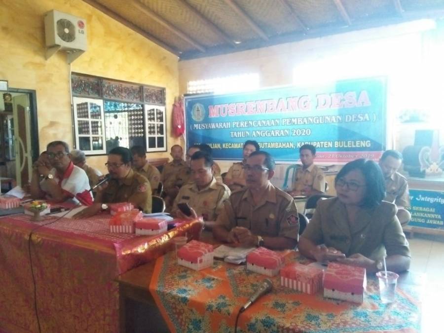 Senin, 21 Oktober 2019. Dinas Pemberdayaan Masyarakat dan Desa kab. Buleleng yang diwakili oleh Sekretaris Dinas PMD, Ibu Ni Made Sukreni, S.Sos Msi hari ini menghadiri Musrenbang Des di desa Bulian kecamatan Kubutambahan.