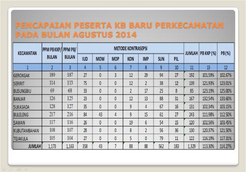 Pencapaian Perserta KB Baru Perkecamatan Pada Bulan Agustus 2014