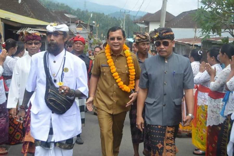 Wakil Bupati Buleleng, dr. I Nyoman Sutjidra, Sp.OG didampingi Plt. Ketua TP PKK Kabupaten Buleleng, Ny. Ayu Wardhany Sutjidra menghadiri Penilaian Lomba Desa yang diselenggarakan di Desa Tinggarsari, Kecamatan Busungbiu, Senin (25/3).