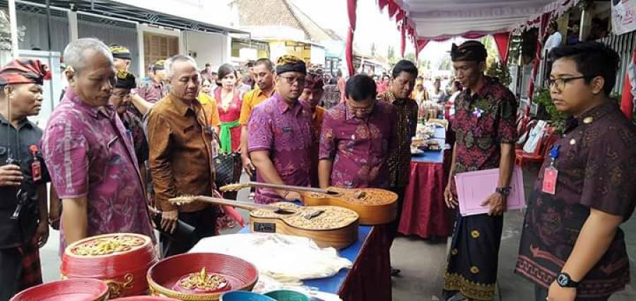 Wakil Bupati Buleleng, dr. I Nyoman Sutjidra, Sp. oG didampingi Kepala Dinas PMD Kabupaten Buleleng, I Made Subur,S.H serta Camat Buleleng, Gede Dodi Sukma Oktiva Askara mengunjungi stand Pameran Berupa Hasil Kerajinan dan Olahan Makanan dalam Acara Evaluasi Perkembangan Desa tingkat Kabupaten di Desa Tukadmungga, 29/03.