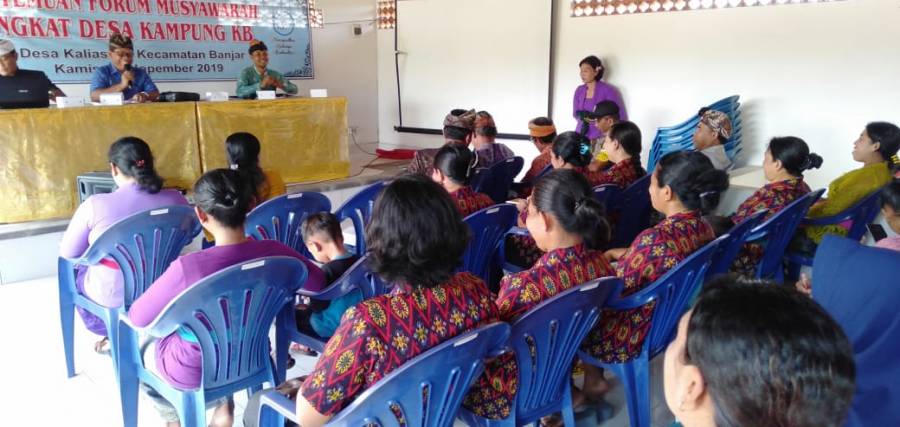 Dinas Pengendalian Penduduk, Keluarga Berencana, Pemberdayaan Perempuan dan Perlindungan Anak Kabupaten Buleleng khususnya pada Bidang Penyuluh Keluarga Berencana dan Penggerakan melaksanakan Pertemuan Forum Musyawarah Tingkat Desa Kampung KB di Desa Kaliasem, Kecamatan Banjar yang dilaksanakan pada hari Kamis, 28 November 2019