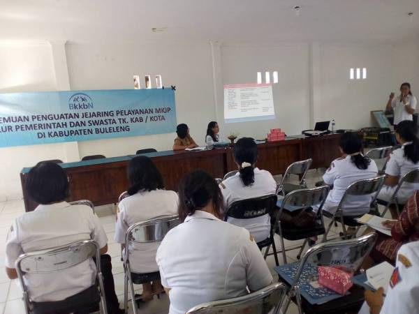 Pertemuan Penguatan jejaring pelayanan MKJP diluar Pemerintah dan Swasta tingkat /Kabupaten Kota di kabupaten Buleleng materi ini yang di isi oleh BKKBN propinsi Bali dan di buka langsung Oleh Kepala Dinas PPKBPP PA Kabupaten Buleleng, yang dihadiri oleh tenaga medis yang ada di 9 Kecamatan.
