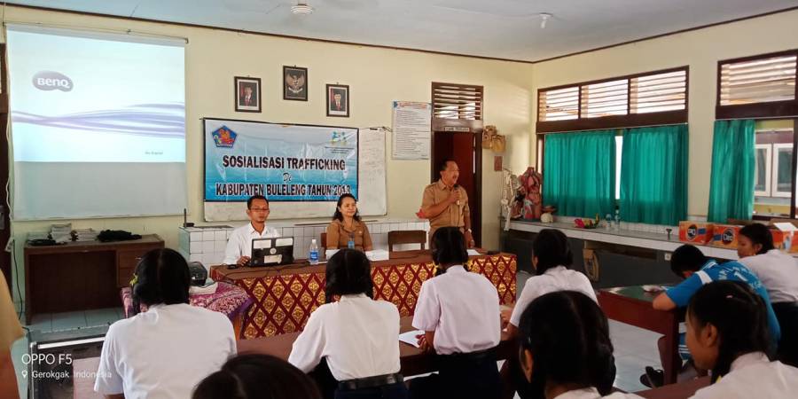 Senin, 8 oktober 2018 sosilaisasi trafficking di SMP N 1 Gerokgak.