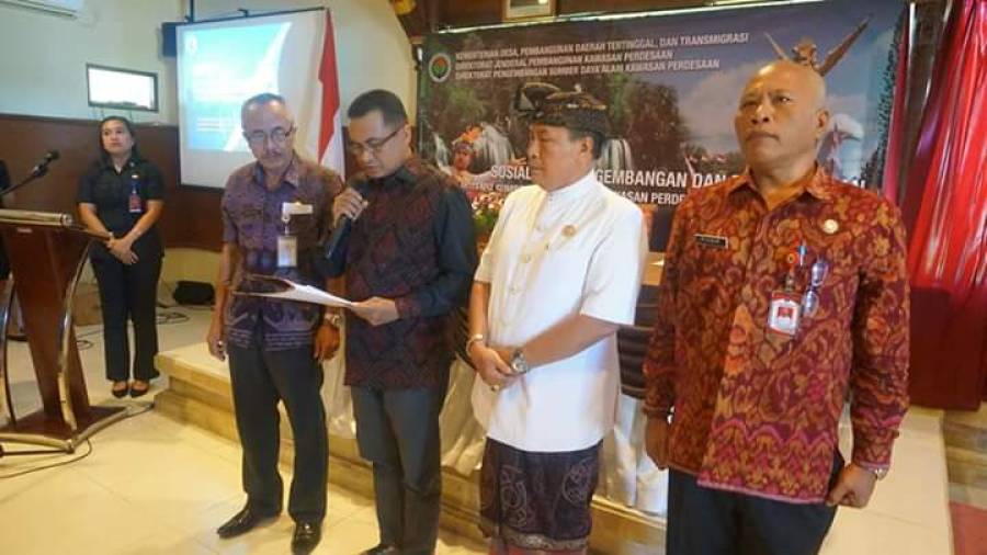 Mewakili Bupati Buleleng Putu Agus Suradnyana, ST Asisten Bidang Administrasi Pemerintahan Setda Kabupaten Buleleng Putu Karuna, SH menghadiri sosialisasi pengembangan dan pemanfaatan potensi sumber daya alam di kawasan pedesaan yang dilaksanakan oleh Direktorat Jenderal Pembangunan Kawasan Pedesaan Kementerian Desa di hotel aneka Lovina. Jumat (3/5).