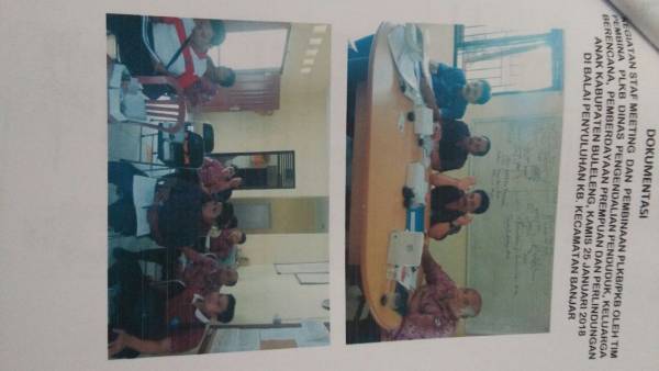 kamis 25 Januari 2018, Dinas Pengendalian Penduduk Keluarga Berencana, Pemberdayaan Perempuan dan Perlindungan Anak Kabupaten Buleleng mengadakan staf meeting dan pembinaan PLKB/PKB oleh tim Pembinaan PLKB di balai Penyuluh Kecamatan Banjar