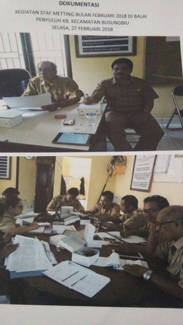 selasa, 27 Pebruari 2018, Dinas Pengendalian Penduduk Keluarga Berencana, Pemberdayaan Perempuan dan Perlindungan Anak Kabupaten Buleleng mengadakan staf meeting dan pembinaan PLKB/PKB oleh tim Pembinaan PLKB di balai Penyuluh Kecamatan Busungbiu