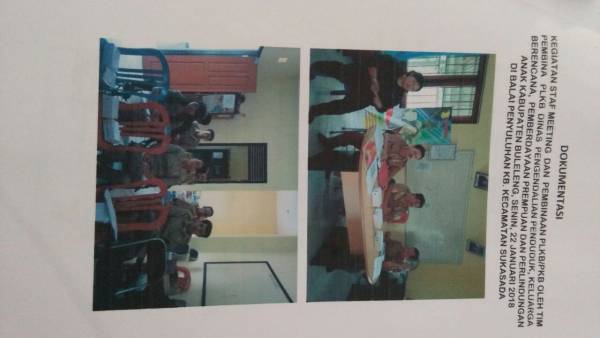 Senin, 22 Januari 2018, Dinas Pengendalian Penduduk Keluarga Berencana, Pemberdayaan Perempuan dan Perlindungan Anak Kabupaten Buleleng mengadakan staf meeting dan pembinaan PLKB/PKB oleh tim Pembinaan PLKB di balai Penyuluh Kecamatan Sukasada