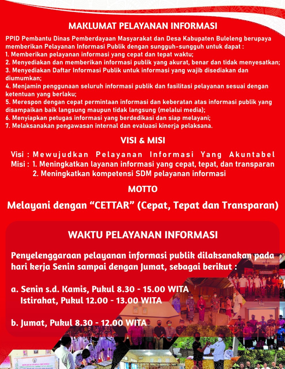 Maklumat Pelayanan, Visi Misi, Motto, dan Waktu Pelayanan Informasi Publik Dinas PMD Kab. Buleleng.