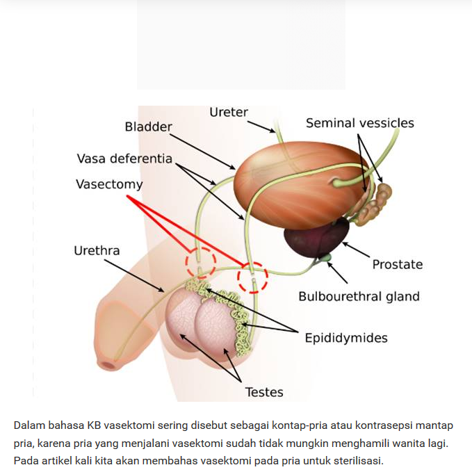 vasektomi adalah prosedur bedah untuk memotong vas deferens pria agar sperma tidak bisa memasuki air mani dan mencegah ejakulasi saat melakukan hubungan seksual.
